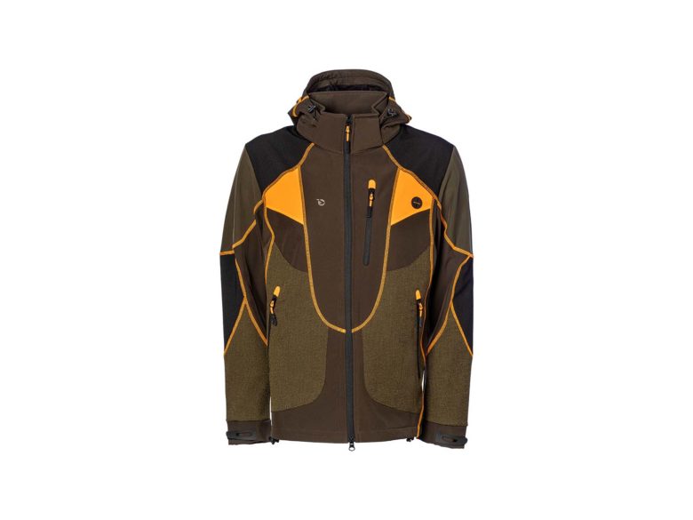 Una chaqueta técnica en tejido elástico con membrana, transpirable e impermeable. Cuenta con el interior de forro polar, bolsillo trasero y capucha.