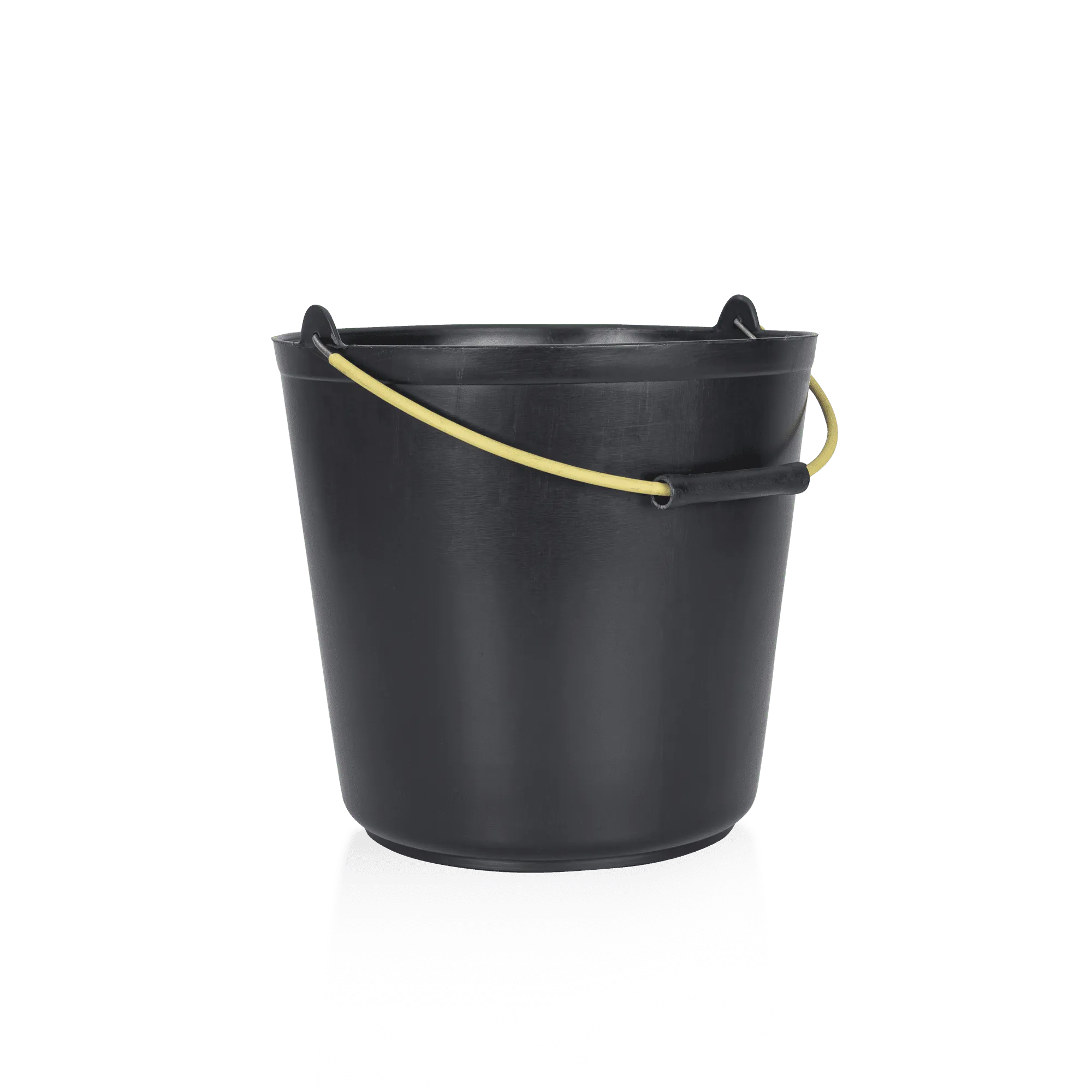 Cubo de plástico negro resistente con capacidad para 15 litros.